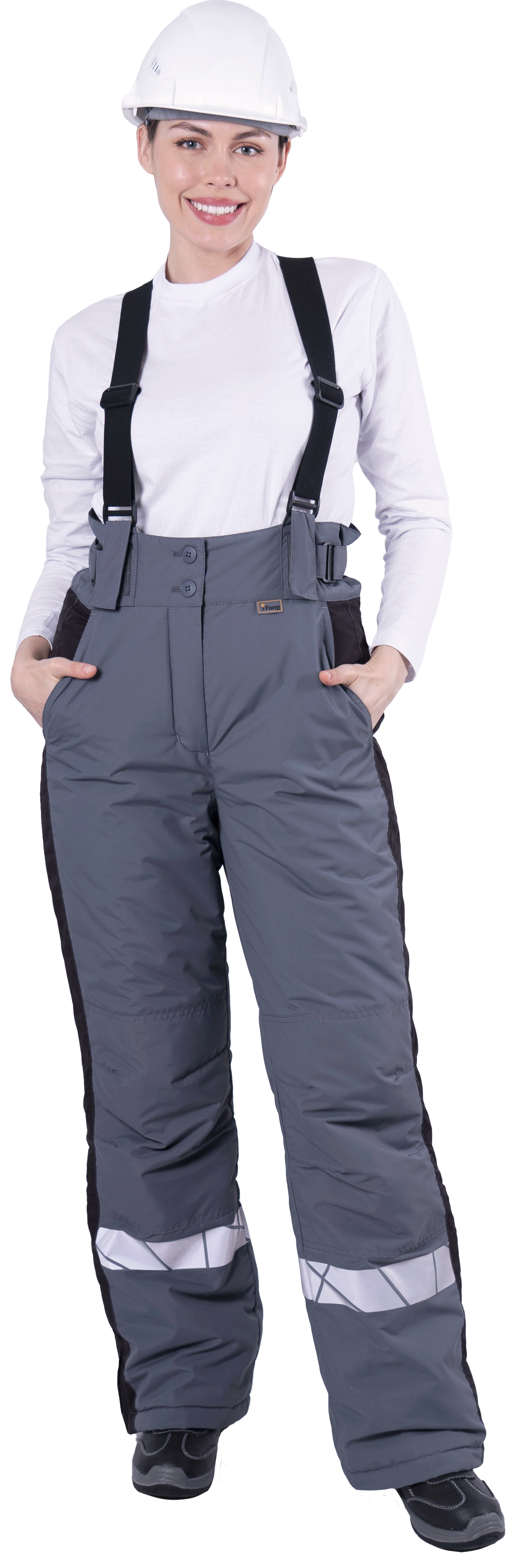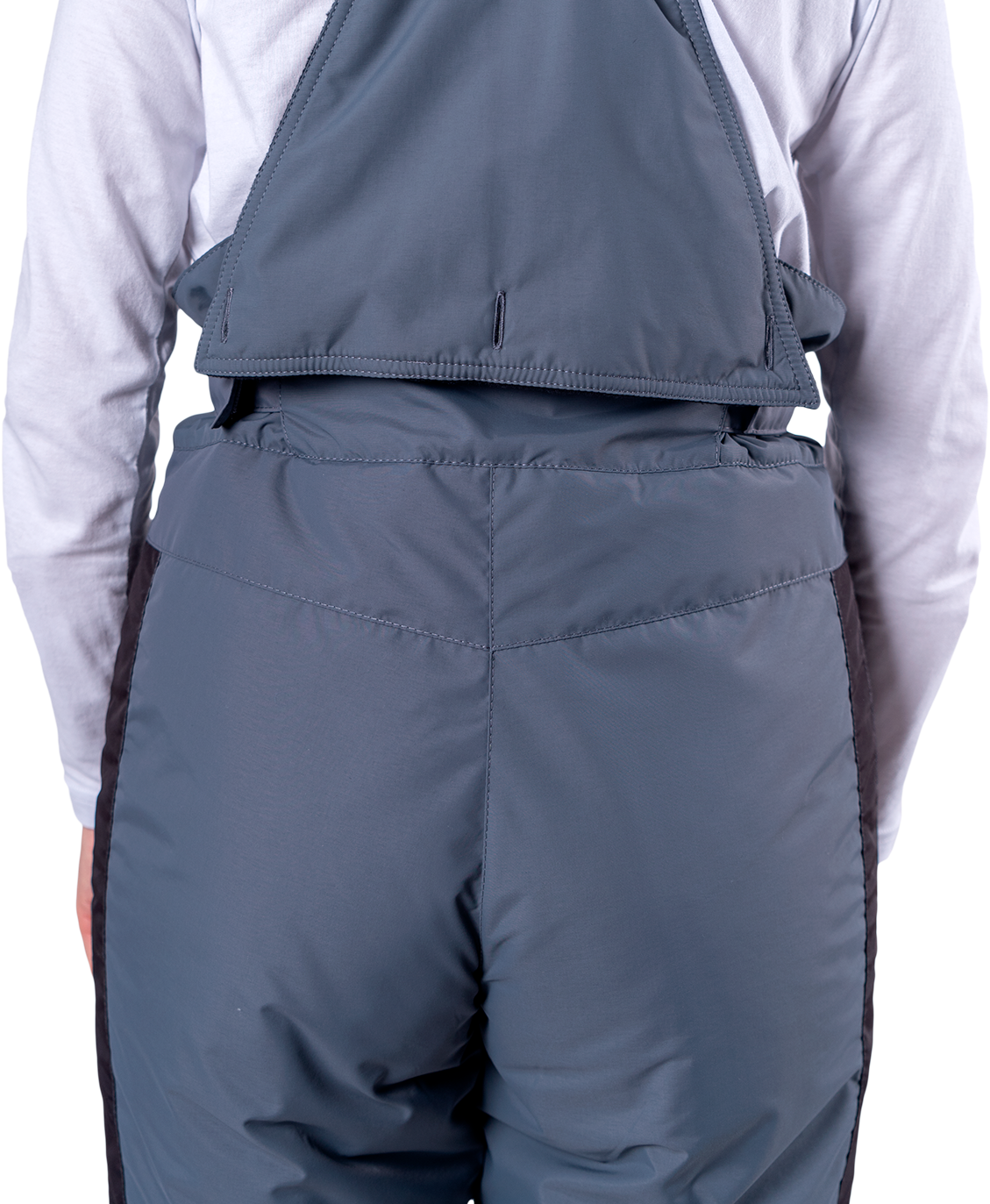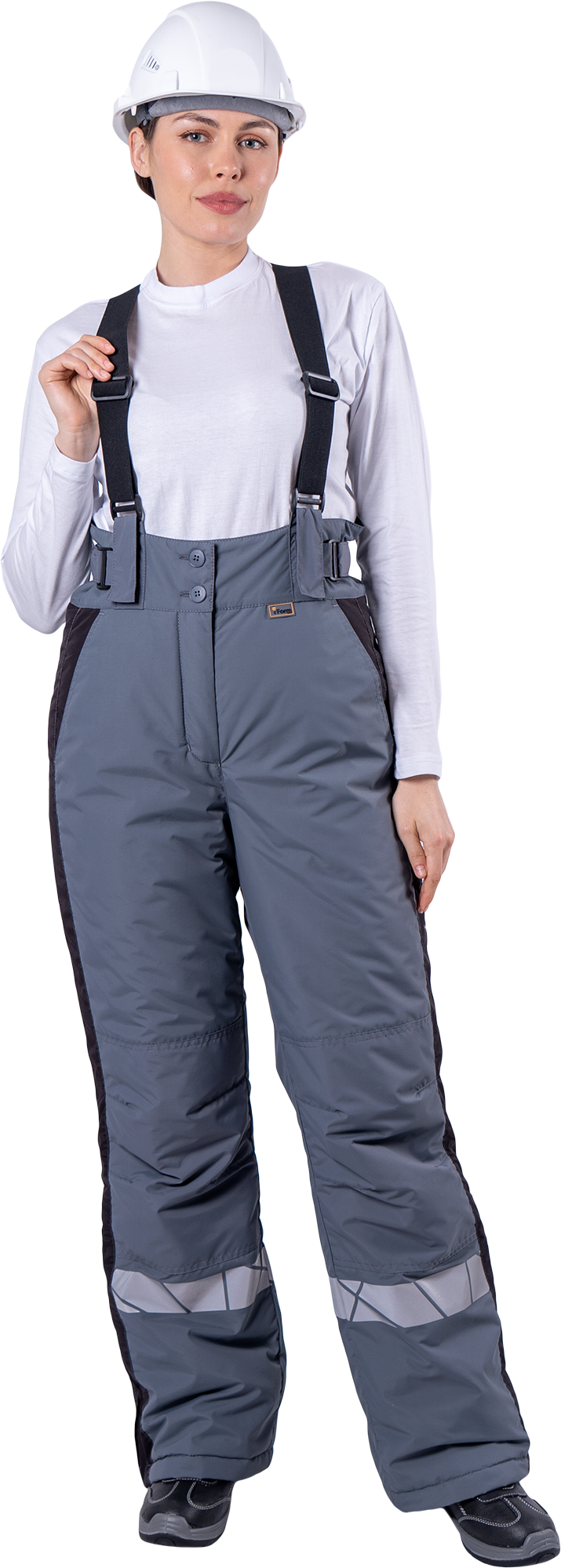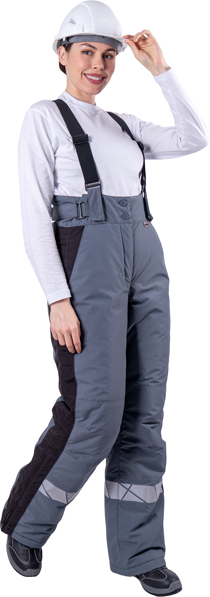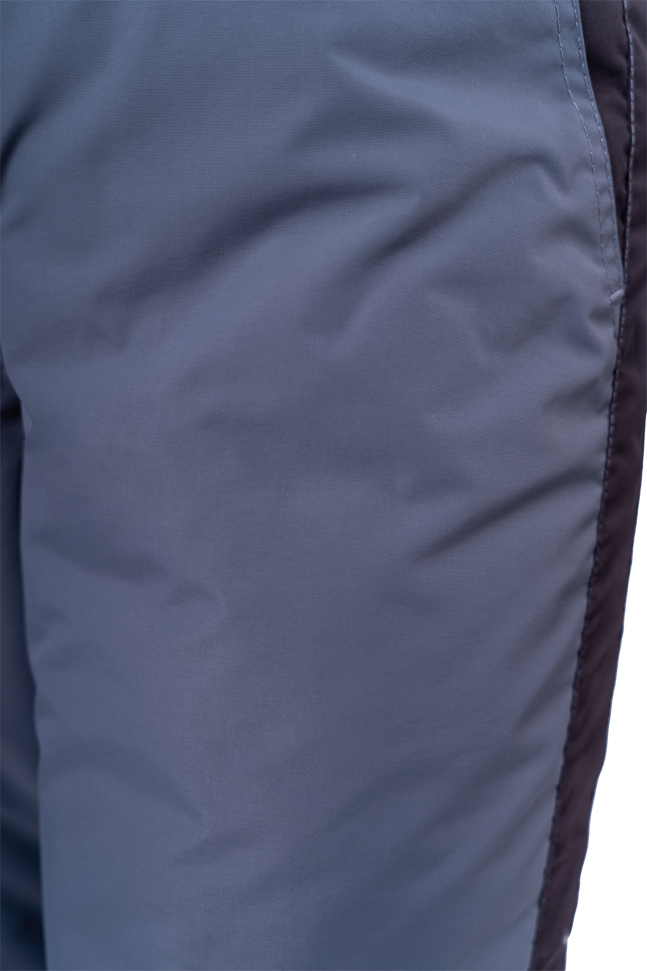 • высокий утеплённый пояс с застёжкой на две пуговицы. Объем пояса регулируется в области боковых швов с помощью хлястиков с застежкой текстильной и держателя с двухщелевой пряжкой