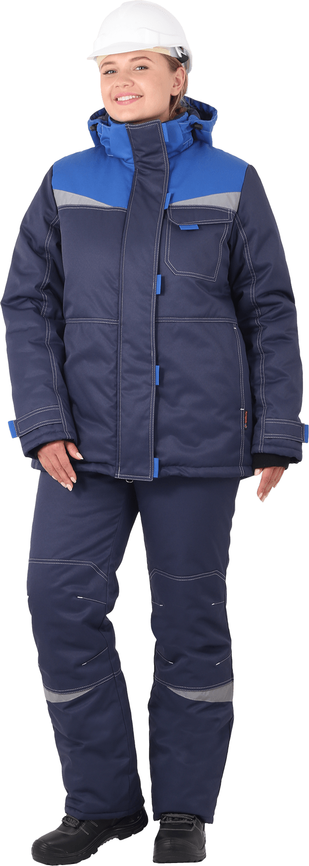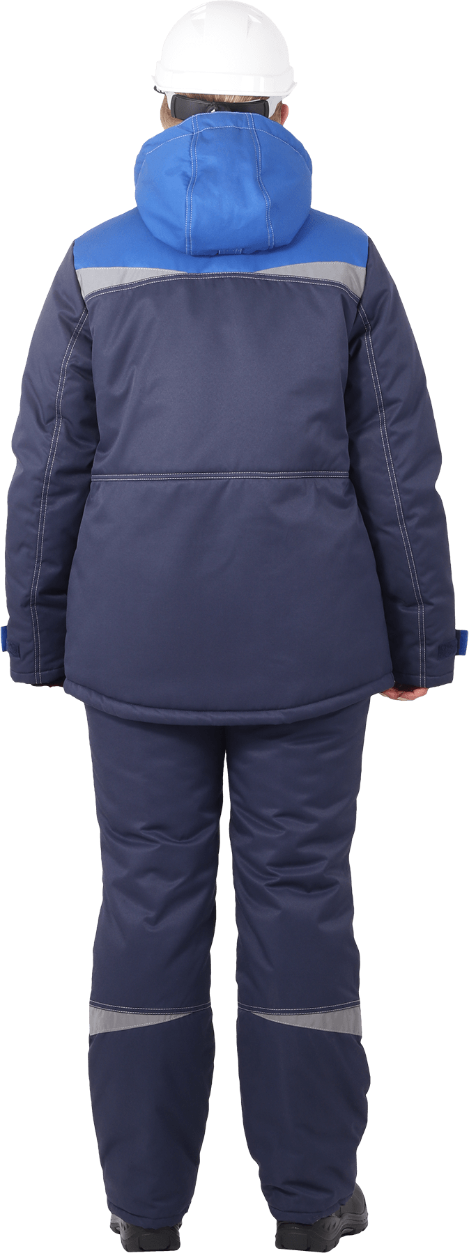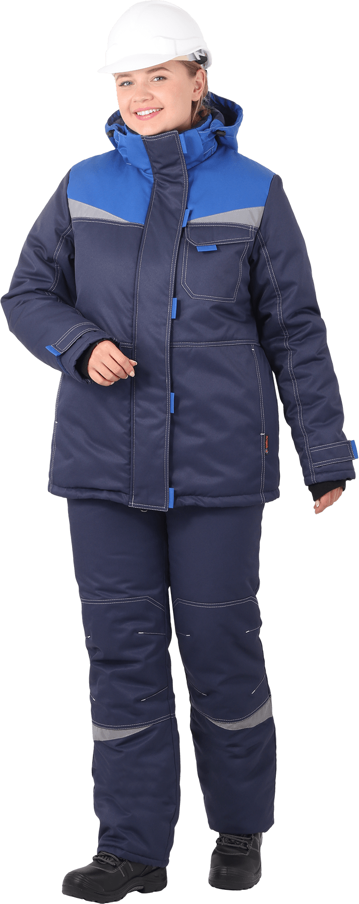 Костюм состоит из куртки и брюк. В костюме используются световозвращающие