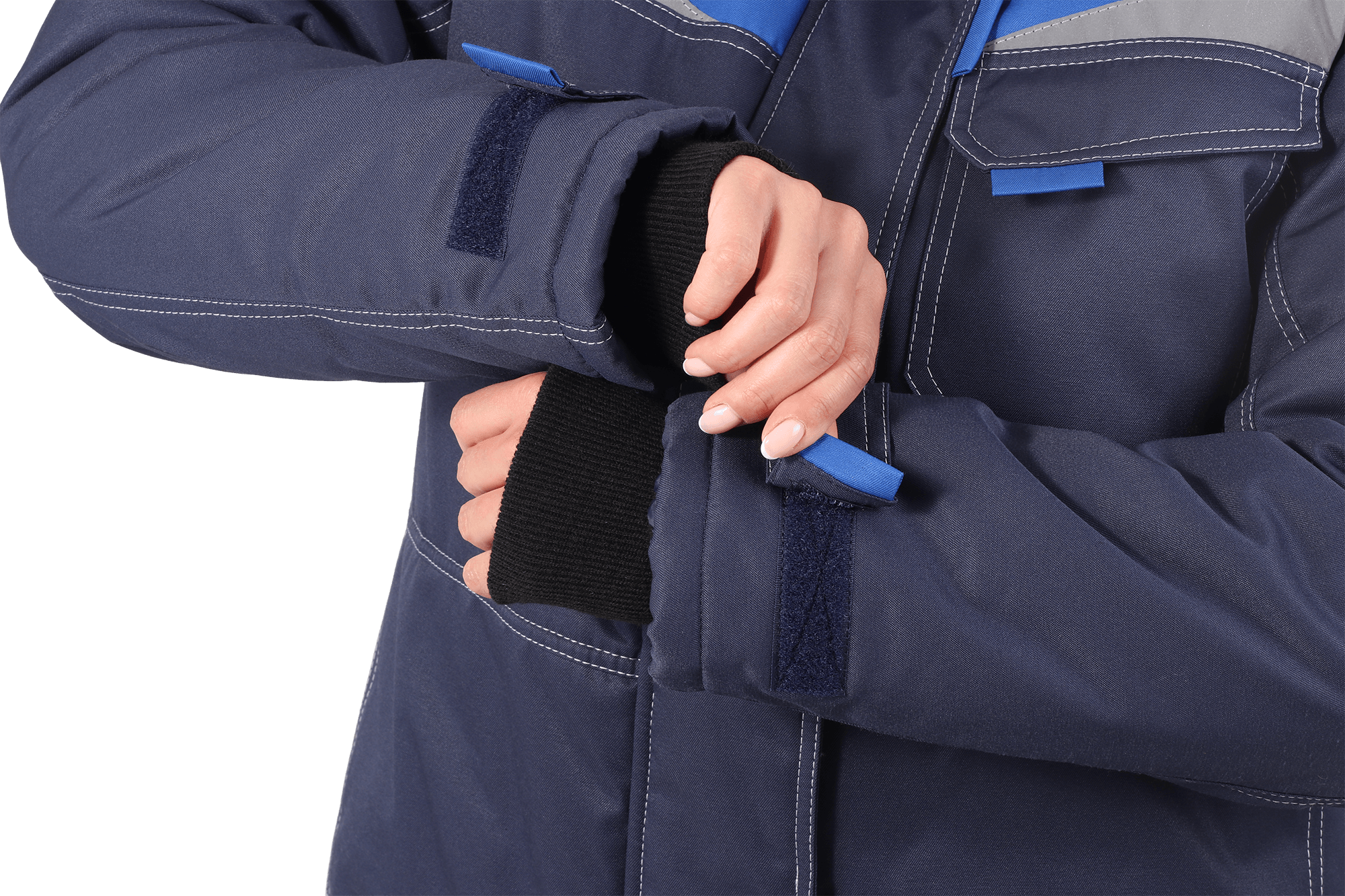 • рукава втачные, с втачными патами для регулировки объёма и внутренними