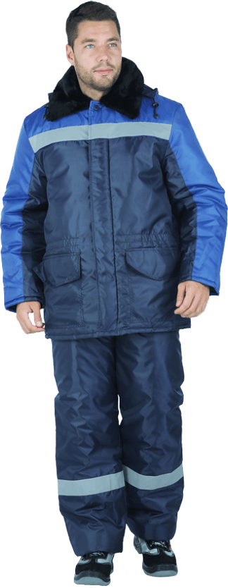 Костюм состоит из куртки и брюк. В костюме используются световозвращающие