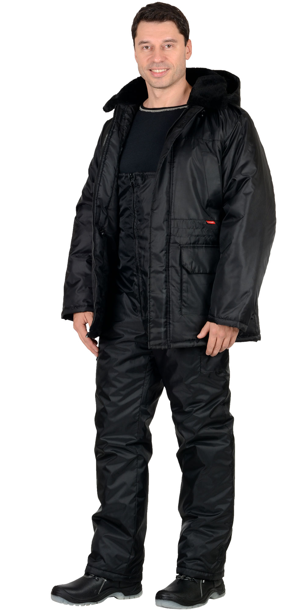 Ткань верха: "Оксфорд", состав: 100% п/э. Ткань подкладочная: "Таффета", состав: 100% п/э., Утеплитель: Синтепон, состав: 100% п/э.,Куртка - 3слоя - итого: 450 гр./м2. Полукомбинезон - 2 слоя - итого: 300гр./м2.ГОСТ 12.4.303-2016