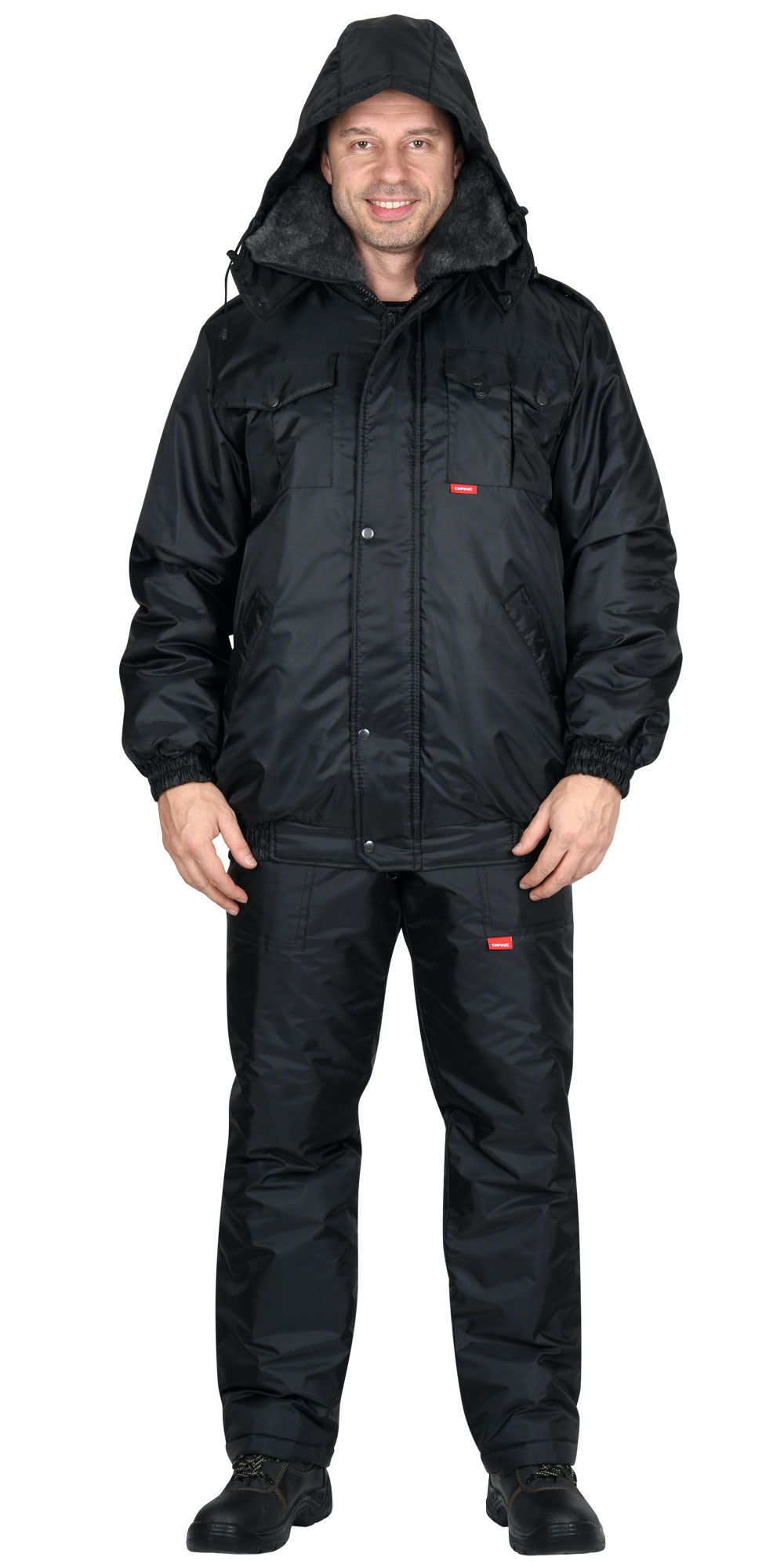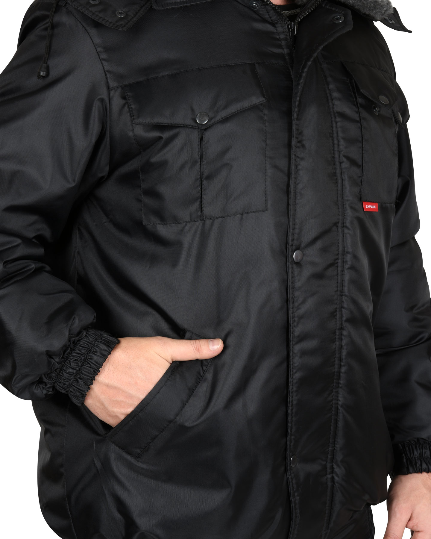Куртка короткая, с притачной утеплённой подкладкой, с центральной застёжкой на двухзамковую тесьму-«молния» и внешним ветрозащитным клапаном, застёгивающимся на кнопки; с отложным воротником; с погонами, застёгивающимися на кнопку по плечевым швам и пристёгивающимся меховым воротником. Рукава с манжетами с эластичной лентой с хлястиком и липучкой. Капюшон съёмный. Куртка с притачным поясом, с эластичной лентой в боковых частях пояса.