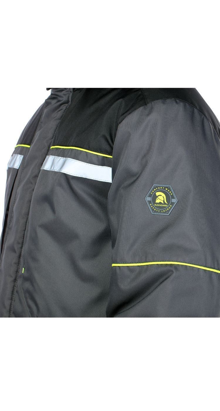 На кокетках, рукавах курки и в области коленей спереди на брюках расположены световозвращающие канты яркого цвета для обеспечения безопасности в условиях плохой видимости.