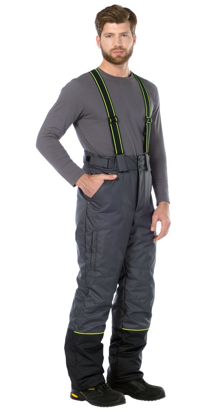 Брюки со съемными утепленной спинкой и эластичными бретелями с регулировкой по длине.
