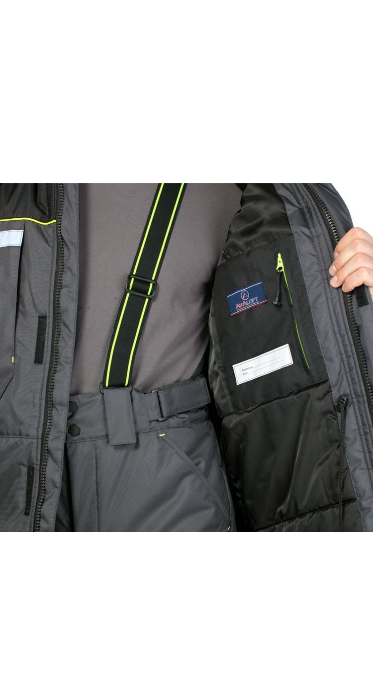 Костюм мужской утепленный, состоит из куртки и брюк.