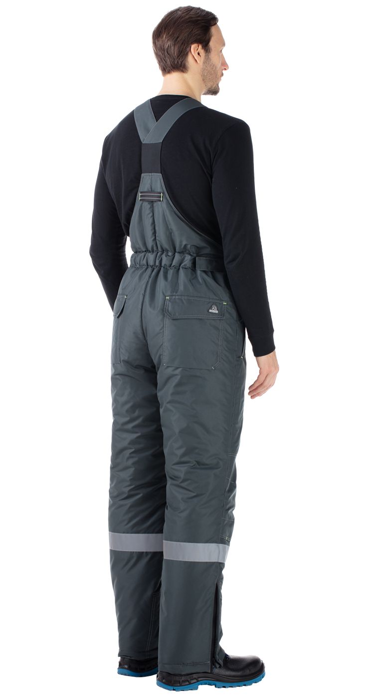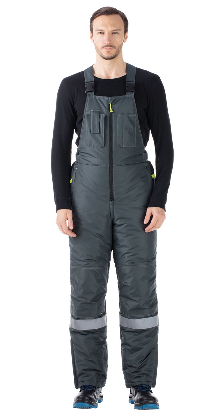 На куртке и по низу полукомбинезона световозвращающие широкие полосы для работы в условиях плохой видимости.