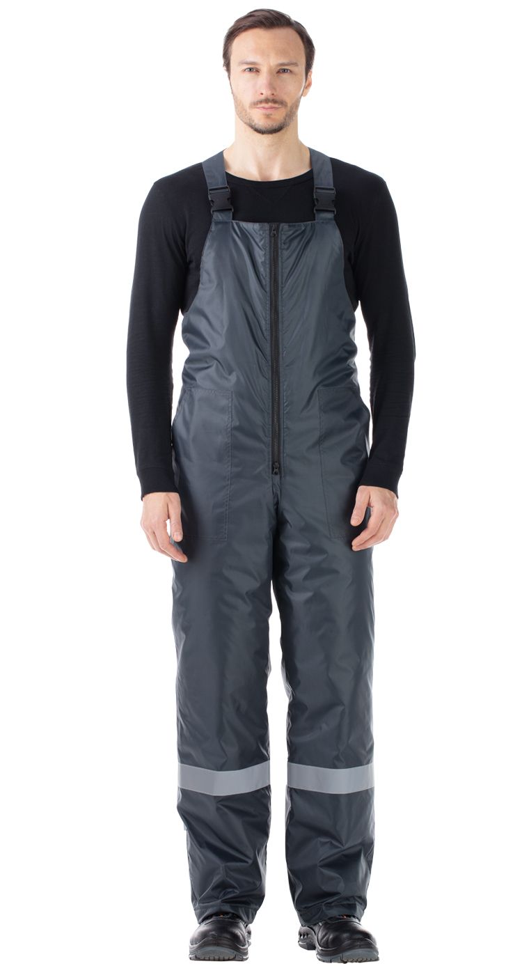 Для обеспечения безопасности в условиях плохой видимости по верху и на рукавах куртки, по низу брючин полукомбинезона расположены широкие световозвращающие полосы.