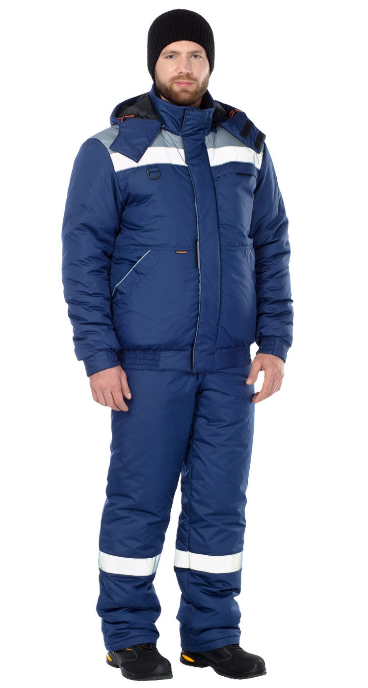 Костюм мужской утепленный, состоит из куртки и полукомбинезона.