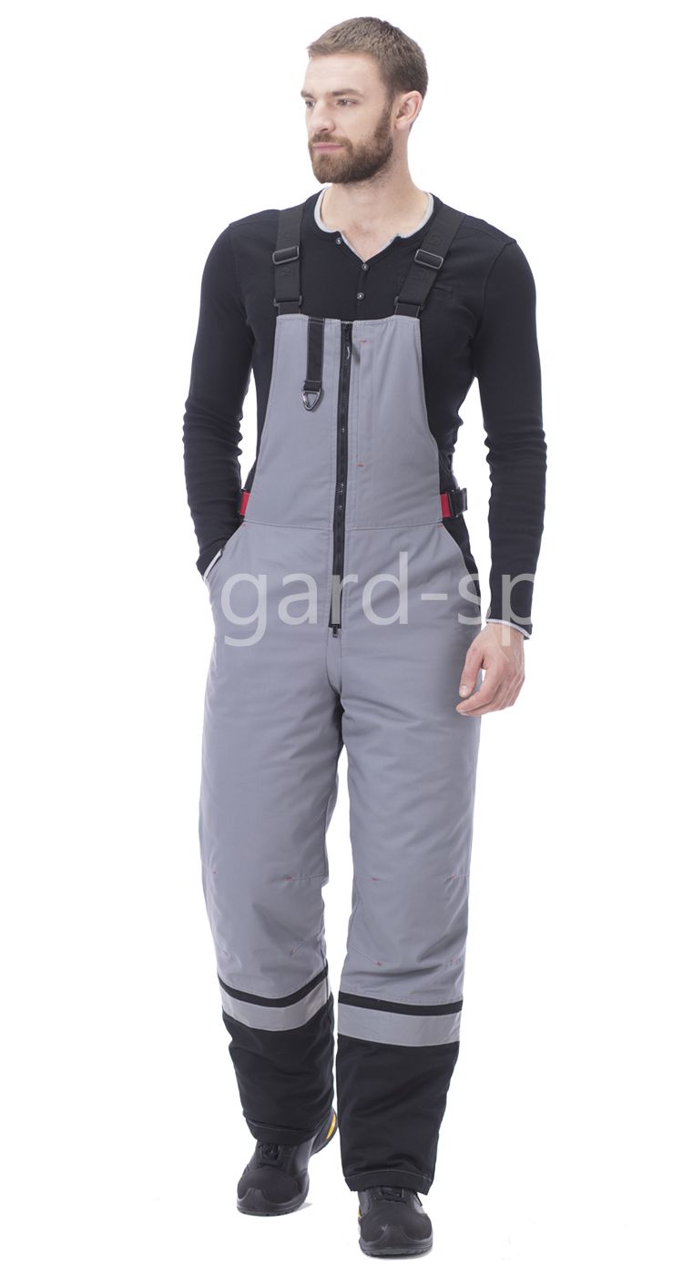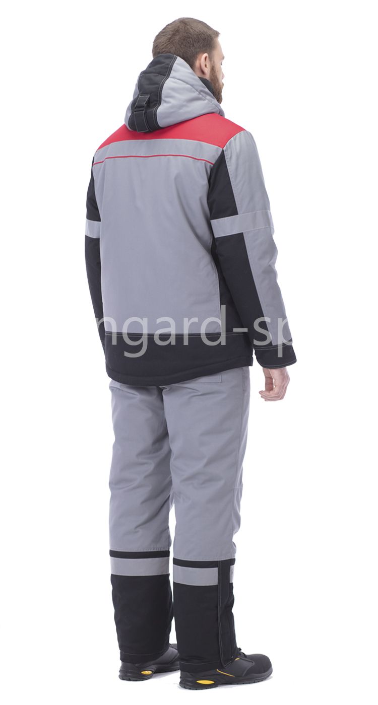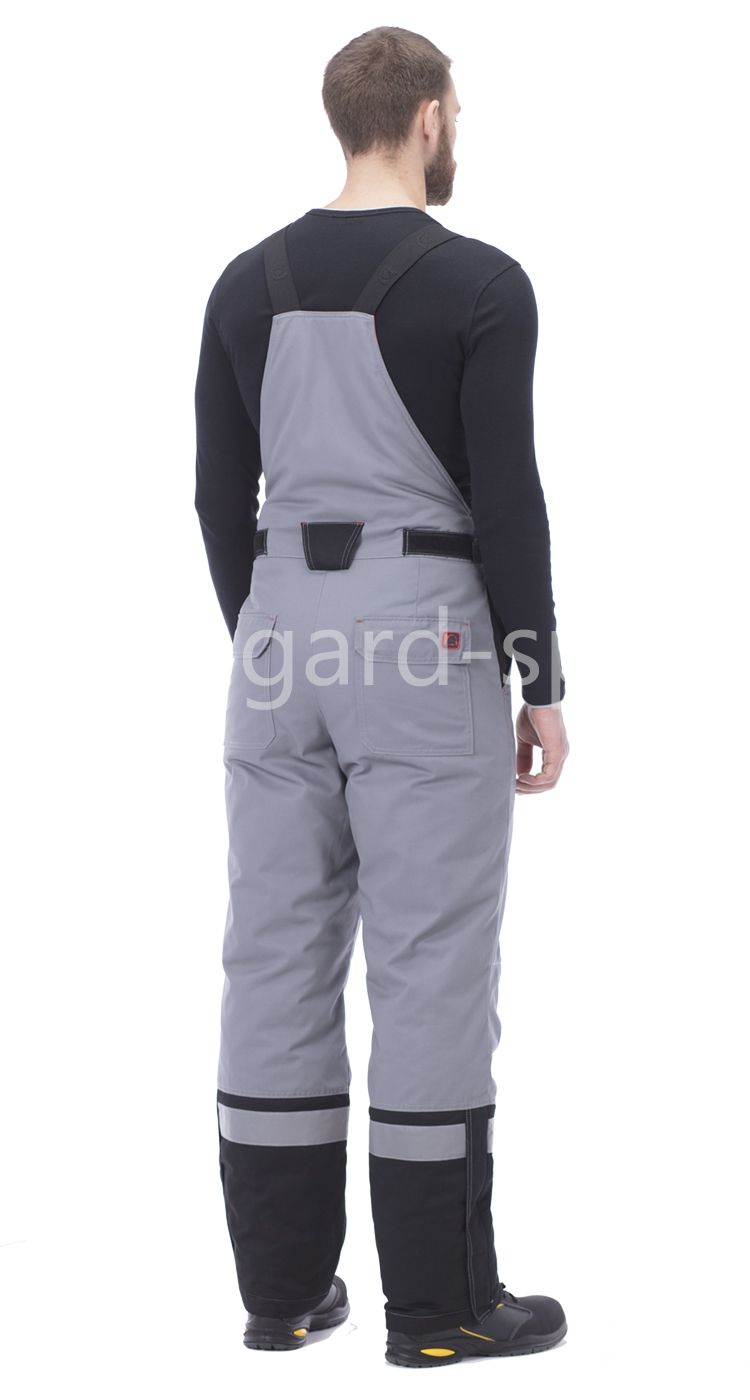 На куртке и по низу полукомбинезона – широкие световозвращающие полосы для работы в условиях плохой видимости.