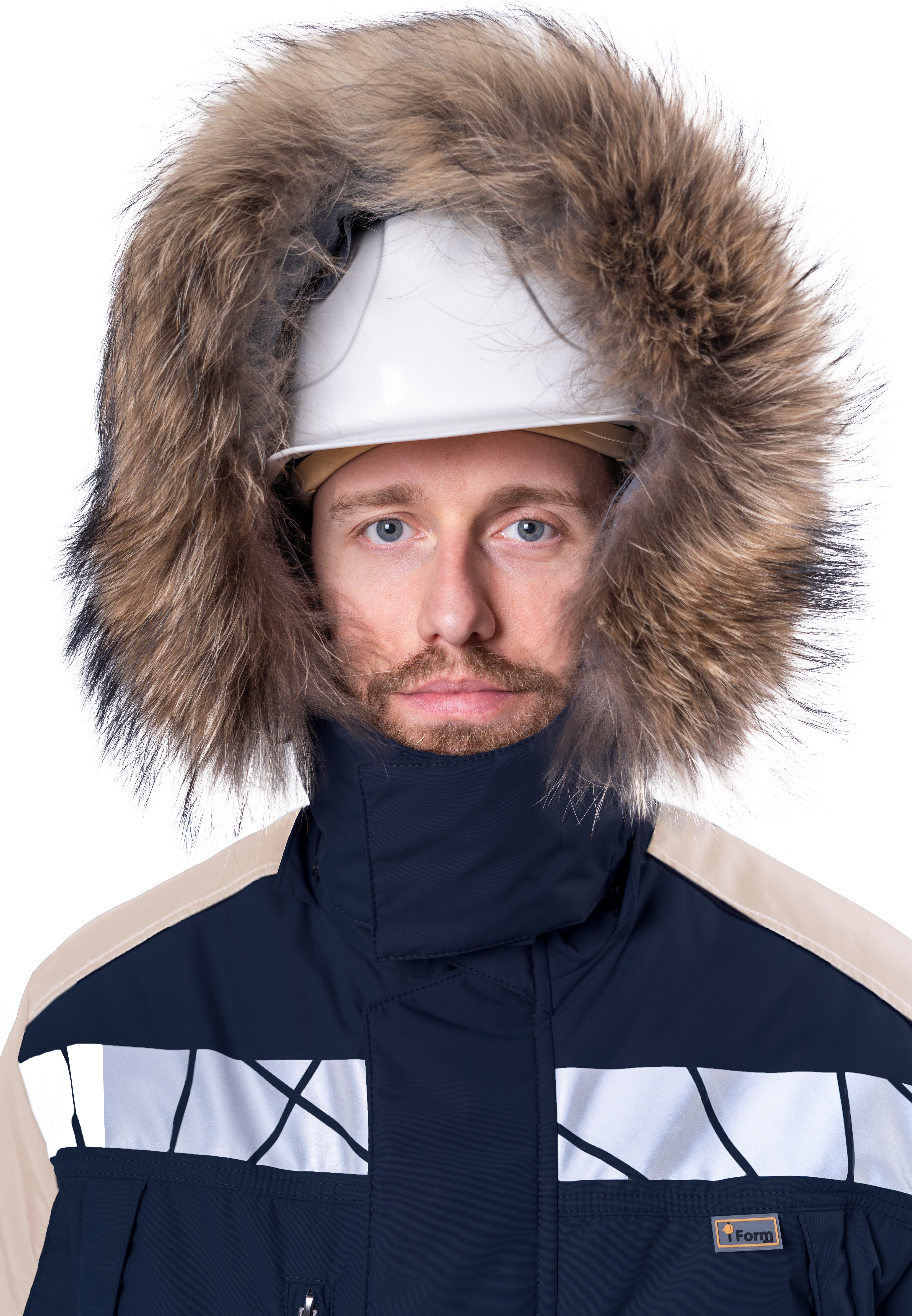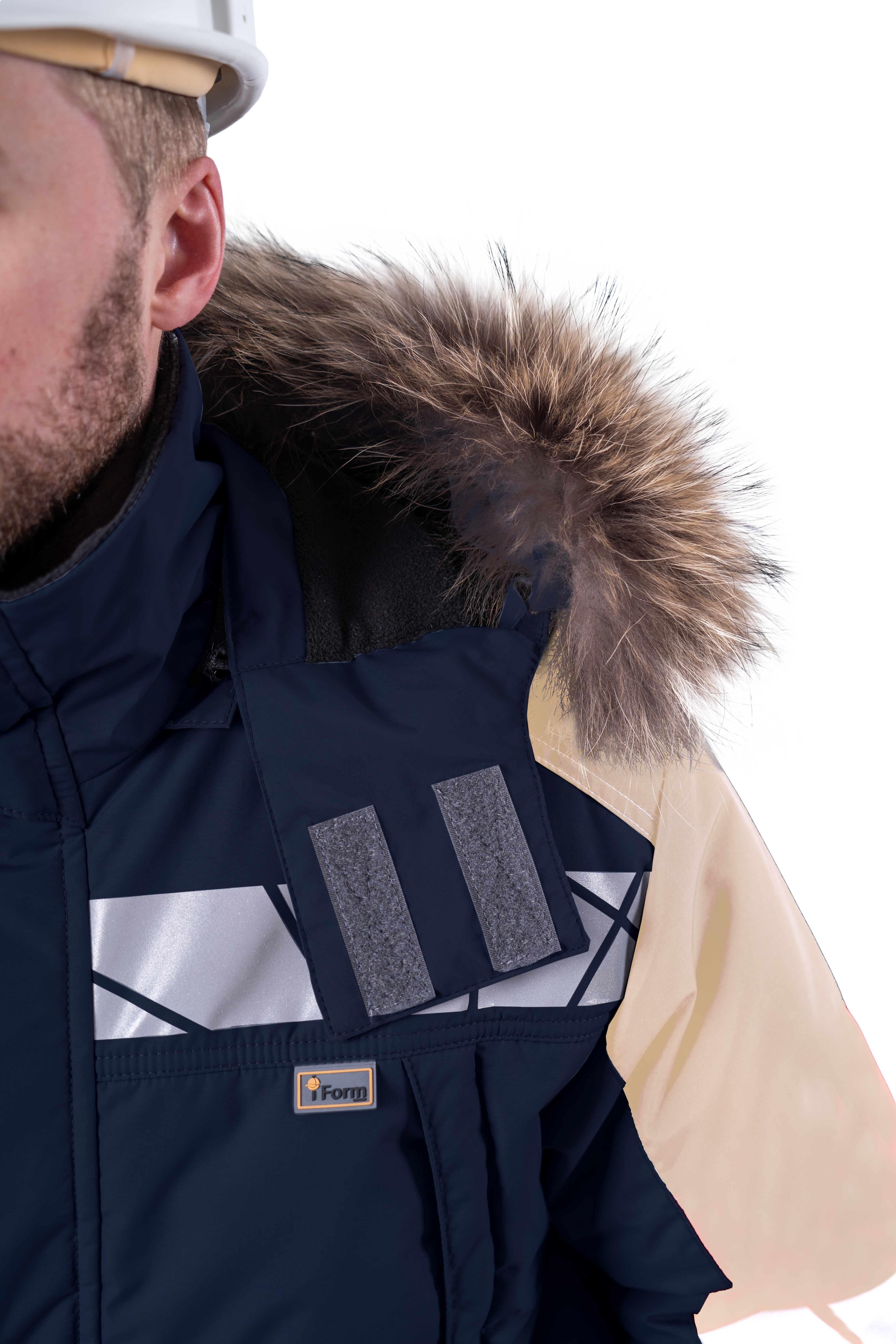 • регулируемый, съёмный капюшон со съёмной меховой опушкой из