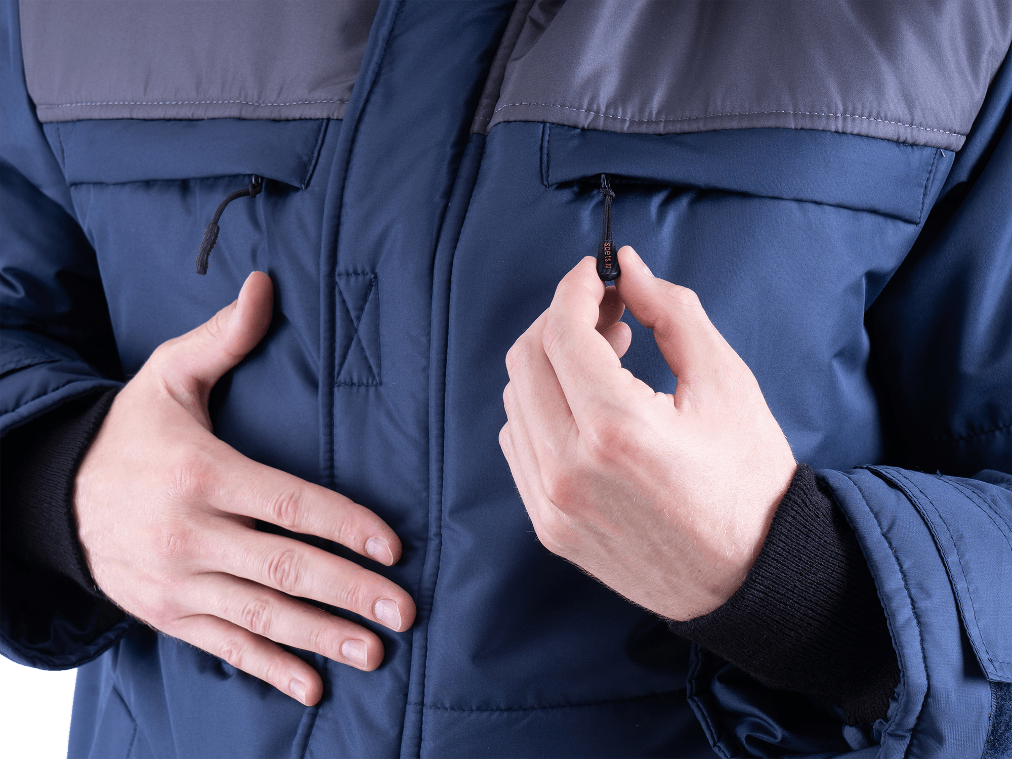 • центральная застежка на молнию с ветрозащитной планкой с текстильной