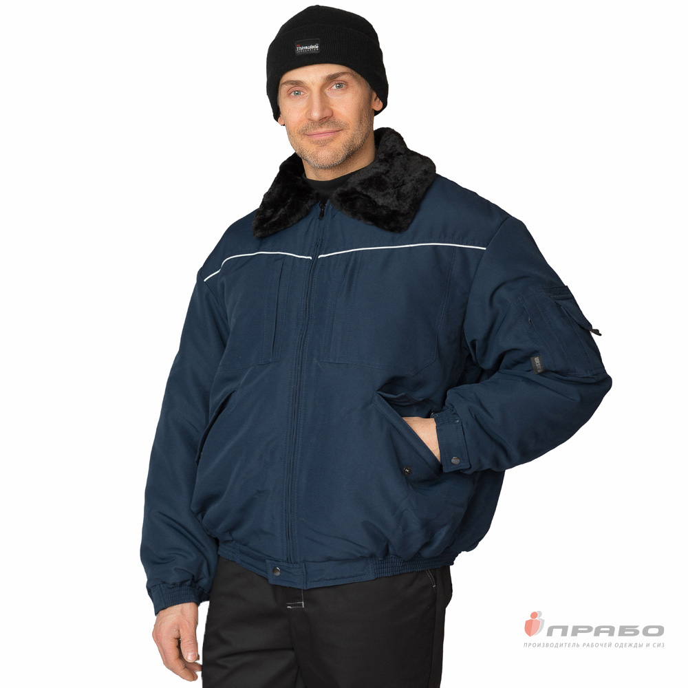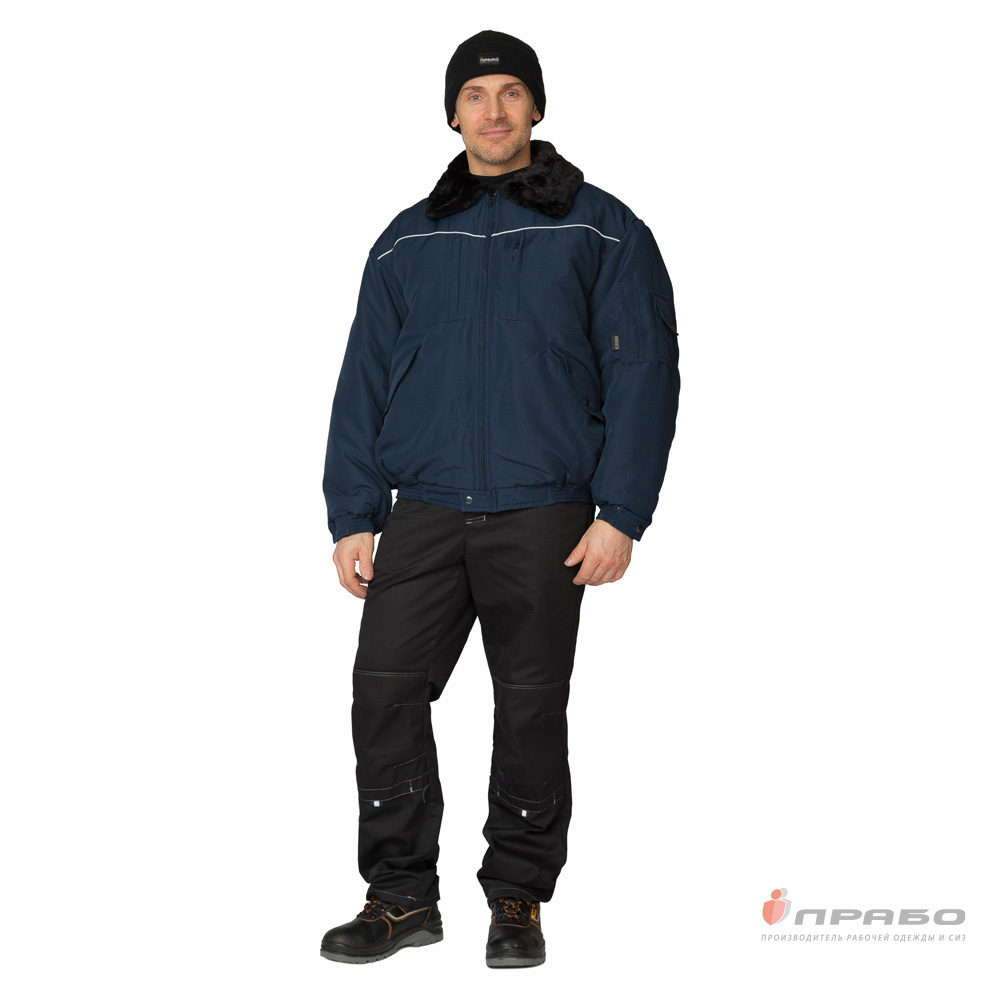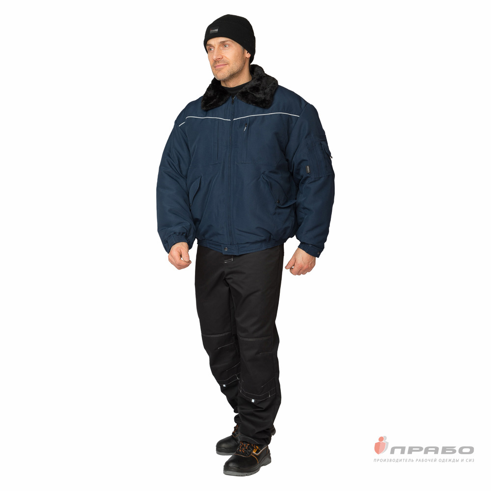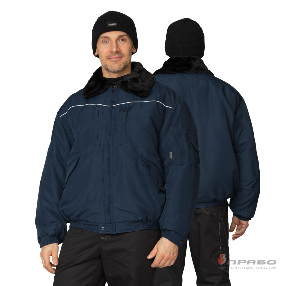 Куртка: укороченная, с центральной застёжкой на молнию, которая внизу защищена патой с застёжкой на кнопку, с внутренней ветрозащитной планкой. Воротник отложной из искусственного высококачественного меха чёрного цвета. Рукава втачные, с притачной манжетой на резинке и патой с застёжкой на кнопку. Пояс в области боковых швов собран эластичной тесьмой для плотного прилегания к талии.