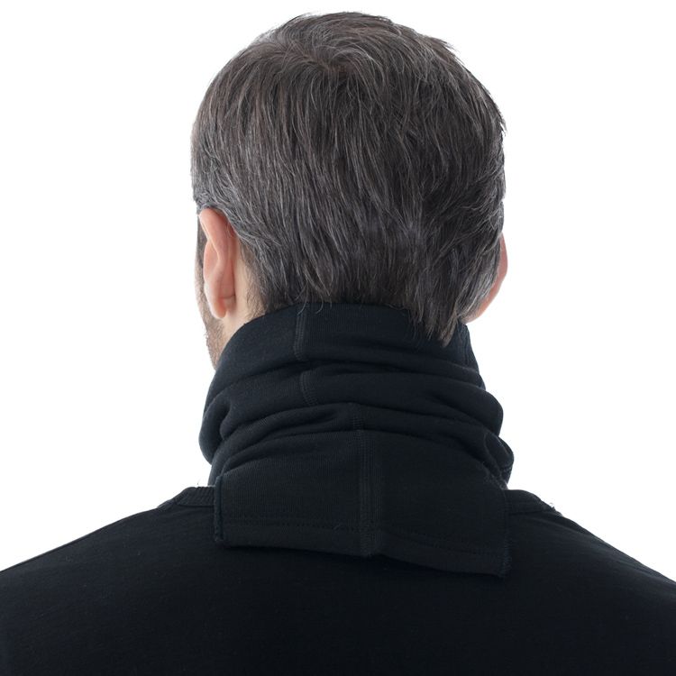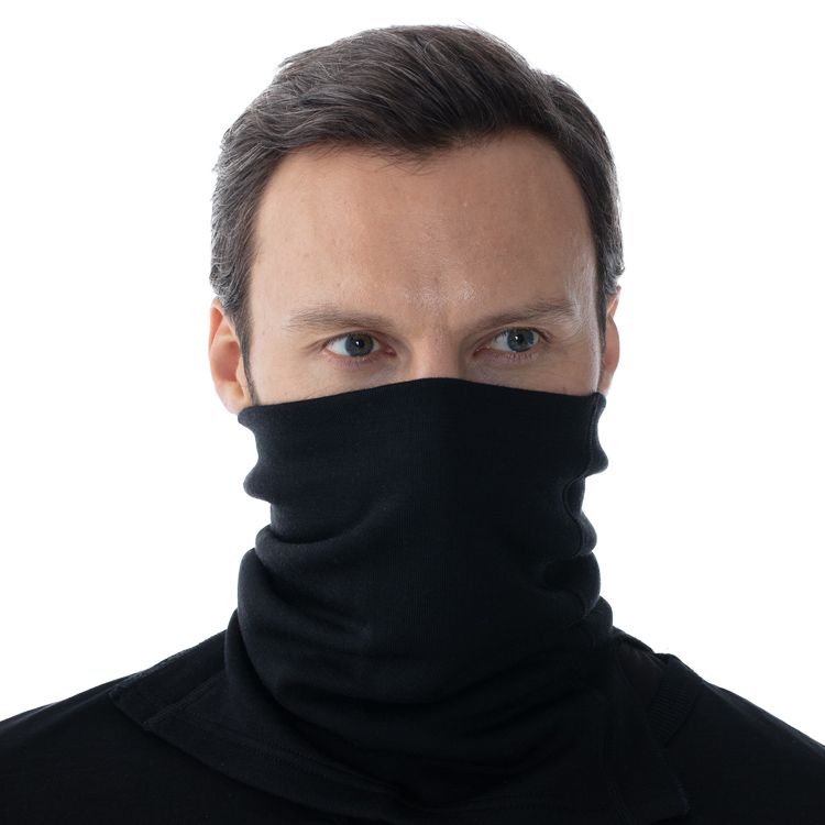 Шарф-маска из теплого трикотажа с мягким начесом с изнаночной стороны, с плечевыми разрезами для удобства ношения. Можно носить в качестве шарфа, а в мороз и при холодном ветре использовать как лицевую маску.