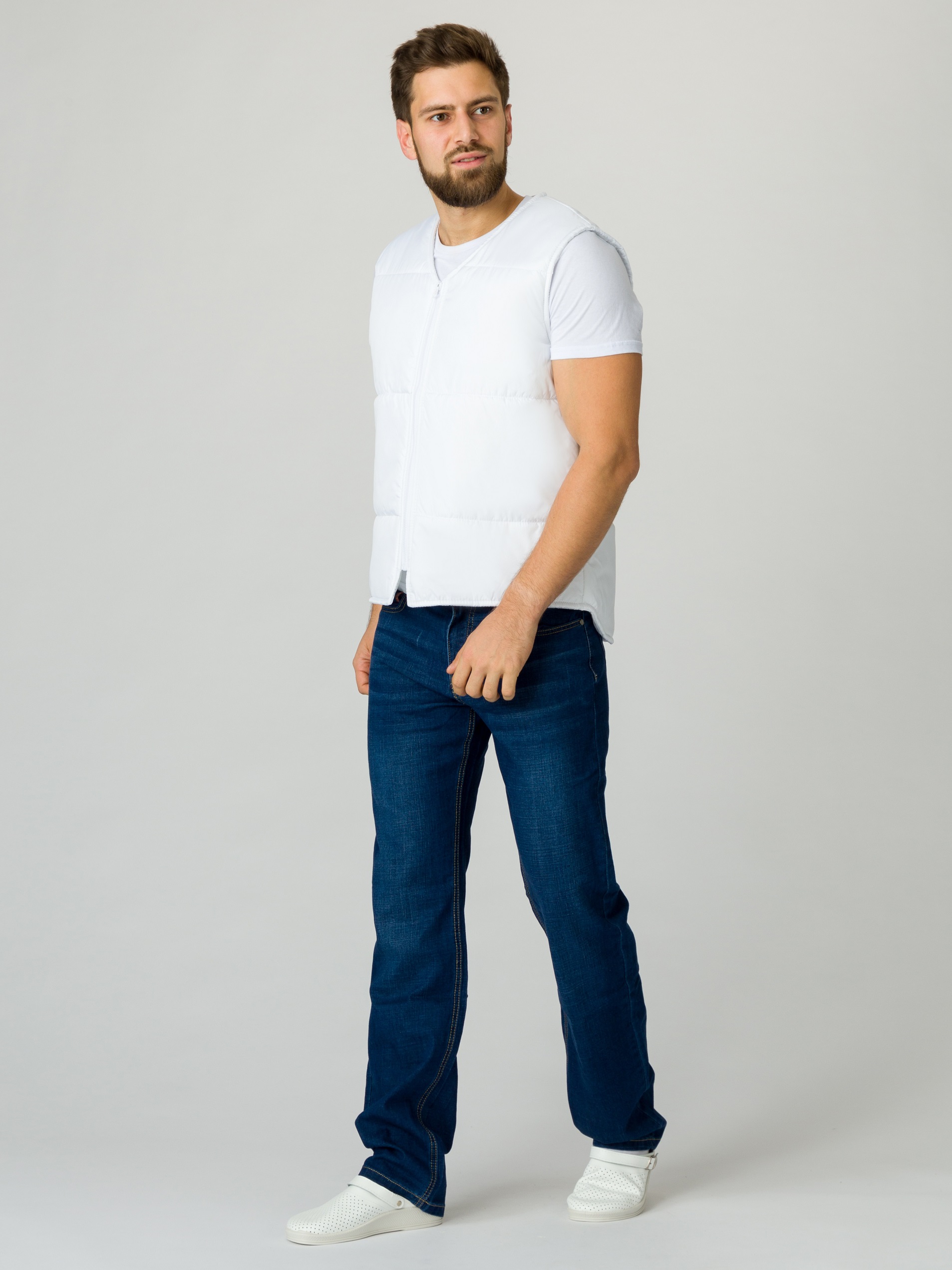 Жилет белый «Комфорт» отличается стильным внешним видом, удобным кроем и отличным качеством материалов. Базовый стеганый жилет является универсальным и подходит как женщинам, так и мужчинам. Классический утепленный жилет относится к базовым элементам гардероба, выступая модным аксессуаром на прогулках или в рабочей деятельности. Благодаря плотной ткани с влагоотталкивающей пропиткой жилетка надежно защищает от осадков и отличается износостойкостью. Утеплитель синтепон помогает сохранить тепло, а удлиненная спинка спасает от переохлаждения поясничный отдел. Теплый жилет может сочетаться с большинством предметов гардероба: джинсами, шортами, спортивными или рабочими брюками. Горловина с U-образным вырезом помогает надевать под жилет модные худи или другую одежду с капюшоном. Безрукавка дополняется удобным внутренним карманом для хранения важных мелочей и записей.